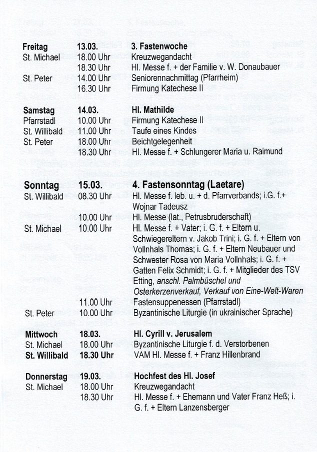 St. Willibald | Sonntag, 1.3. | 8:00 Uhr |