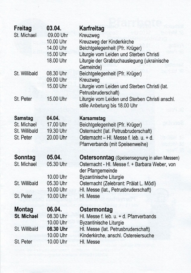 | 10.00 Uhr | Heilige Messe (lateinisch, Petrusbruderschaft) |